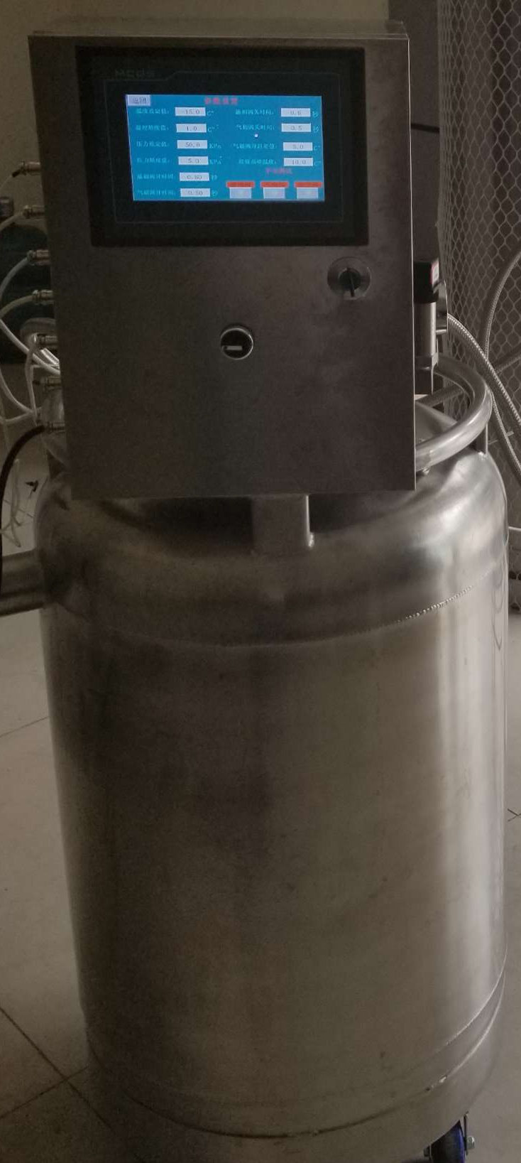 液氮罐智能供液系统 液氮罐控制器 由 液氮罐、低温智能化控制系统、 阀门组件控制电磁阀、PLC编程器、智能化控制液晶大屏幕终端、不间断电源、监控探头系统及反馈电路系统组成,功能可根据客户需求,定制相关罐体自动增压-出液-排气的压力及流量控制程序。